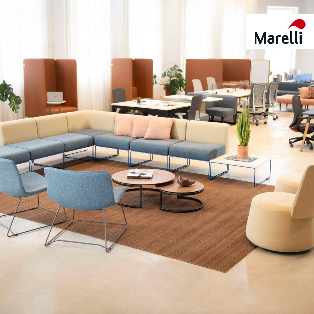 Marelli, based in Caxias do Sul, Brazil, specialize in the custom furniture market, providing meeting tables, workstations, fixed and swivel chairs, floor-to-ceiling partitions, sofa enclosures, and armchairs.